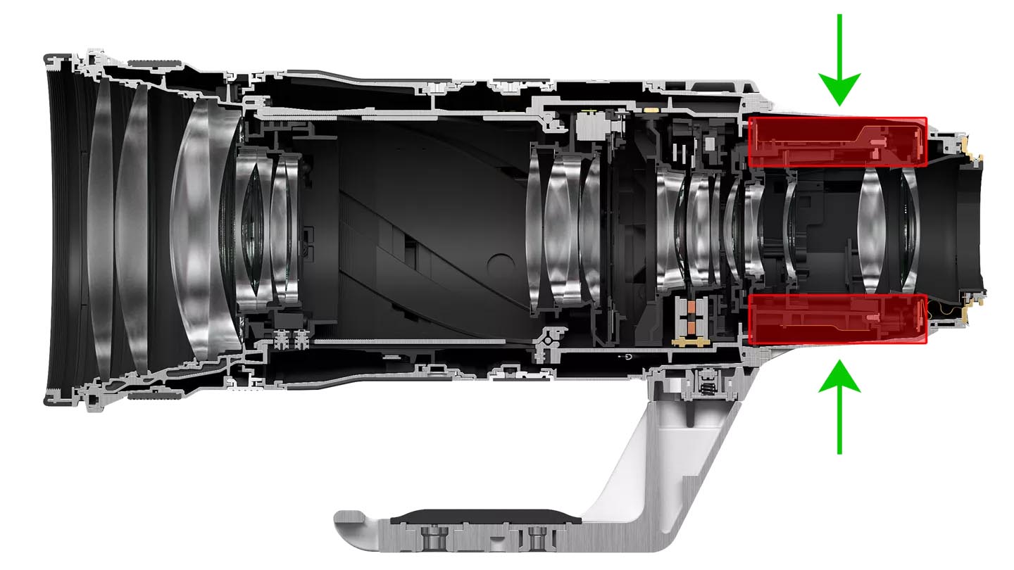 A lente possui um botão de pré-ajuste de foco próximo à parte traseira, de fácil acesso com um dedo da mão direita durante o uso. Isso permite pré-focalizar no ponto onde você espera que a ação ocorra e, em seguida, acessar imediatamente a posição memorizada por meio do botão de pré-ajuste de foco. A operação completa de foco automático (AF) ou manual também permanece disponível. Há uma chave deslizante no corpo da lente que permite programar o pré-ajuste de AF, recuperá-lo ou deslizá-la para a posição “L-Fn” para utilizar esse botão como um botão de função programável.