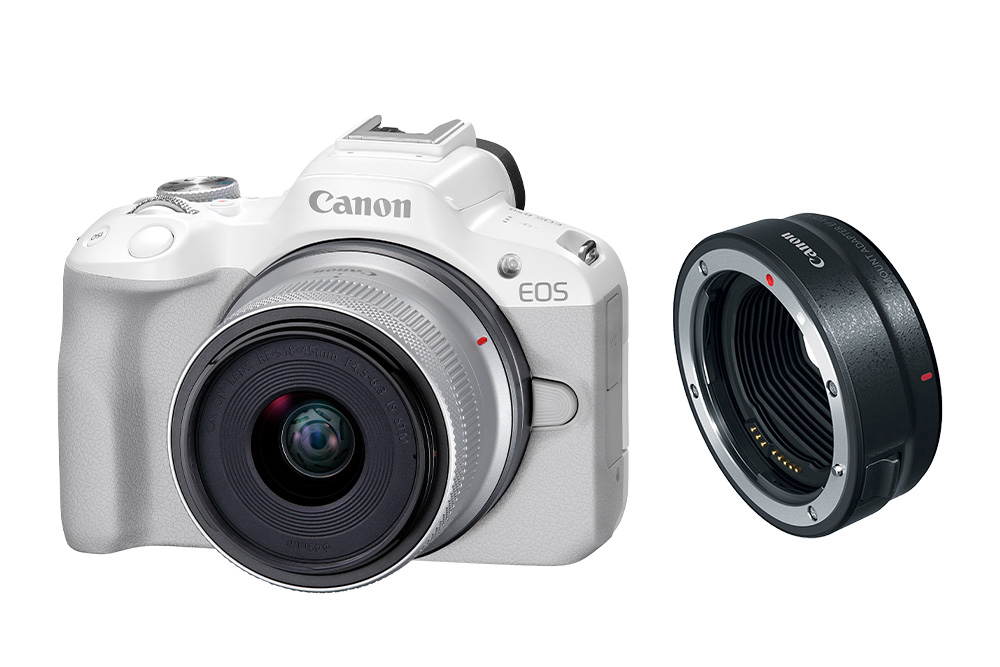 Combo Câmera EOS R50 Branca com Lente RF-S 18-45mm + Adaptador RF para lentes EF e EF-S padrão