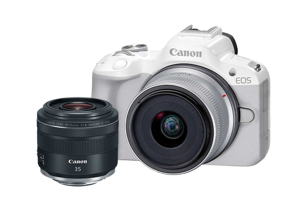 Combo Câmera EOS R50 Branca com Lente RF-S 18-45mm + RF 35mm f/1.8 Macro